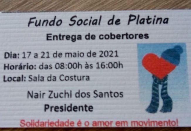O Fundo Social de nosso município iniciou a entrega de vales cobertores a nossa comunidade. De acordo com a Diretora do Fundo Social Ana Paula Scala Biason Fadel, tem direito a retirada do vale rodos os beneficiários do Bolsa Família do BPC (apresentar a carteirinha), e a principio os idosos de famílias com vulnerabilidade que são acamados. Os mesmo devem retirar o vale coberto na Sala de Costura de segunda a sexta-feira das 8 as 16 horas.